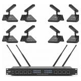 (267). XTUGA YT8 Wireless Microphone System,UHF 8 Channel Gooseneck Cordless Microphone System, Desktop Conference Mics Super-Low Noise for Public Speaking,Lecture,Outdoor Conferences