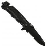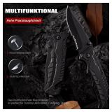 8.10" Military Outdoor EDC Camping Pocket Knife, 7 in 1 Multi-Function Folding Knives with Fire Starter LED Light Seatbelt Cutter Glass Breaker Bottle Opener Tactical Blade (Black)