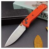 (269). Small ECD Pocket Knife Manual Thumb Studs Open 8Cr13MoV Blade mini bugout folding knife Axis Lock with Orange Grivory Handle (533) with Belt Clip for Camping EDC for Men Woman
