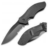 ***2 PACK*** EDC Funny Flip & Fold Pocket Knife, D2 Stonewashed Blade T6 Aluminum Handle, Small Utility EDC Tool Outdoor Hunting Folding Knife for Men (Black)