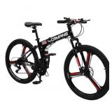 Ktaxon 26 inch 21 Speeds Folding Mountain Bike High Carbon Steel, for Adults Men Women, Black