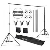 ShowMaven Background Stand, 6.5ft Height x 10ft Wide Adjustable Photo Backdrop Stand with Carry Bag, Clamps, Sangbags and Elastic String Clips
