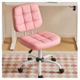 PU Fabric Plaid Cushion Task Chair in Pink with Armless