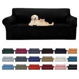 Cupuamon 2026 New Stretch Sofa Slipcovers Couch Cover for 3 Cushion Furniture Protector Sofa Covers with Elastic Bottom Jacquard Fabric Small Checks for Pets, Kids -Sofa, Black