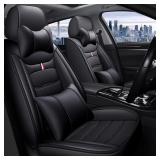 (58) Full Set for GLA-Class 2015-2016 Seat Covers Black PU Leather Car Front Rear Seat Protection Cushions with Headrest, 5-Seat Cover Airbag Compatible MH51 Type Waterproof