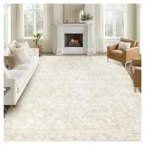8x10 Area Rugs for Living Room: Washable Large Vintage Floral Rug Low Pile Non-Slip Boho Carpet for Bedroom Dining Home Office (Beige, 8'x10')