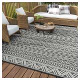 MontVoo Outdoor Rug Carpet Waterproof 9x12 Outdoor Patio Rug Mat Reverisble Plastic Straw Outdoor Rug for RV Camping Picnic Beach Balcony Boho Grey Large