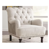 - Fresh and sophisticated. The Tartonelle accent chair with button tufting is a classy addition to your home. Inside-out design with linen weave fabric on the seating area and taupe faux leather on the back. Large nailhead trim ties the look together. Charles of London arms and turned bun feet make this a stylish heirloom piece.