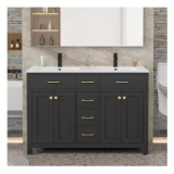 48 in. W x 18 in. D x 34 in. H 2-Sink Freestanding Bath Vanity in Black with White SMC Resin Top and Drain Faucet Set