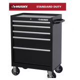 Husky Tool Storage 27 in. W x 18 in. D 5-Drawer Gloss Black Rolling Tool Cabinet