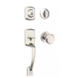 (222) Kwikset Henley Single Cylinder Door Handleset w/Round Maven Knob featuring SmartKey Security in Satin Nickel