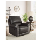(11) Signature Design By Ashley Chatterton Black Faux Leather Swivel Glider Rocker Recliner with Nailhead Trim