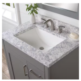 - Top with rustic gray planked replicated oak grain with authentic touch
