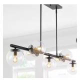 JONATHAN Y (Brand Rating: 4.5/5) Luca Parisian 53 in. 7-Light Black/Clear Modern Glam Iron Globe Linear LED Pendant Light, Black