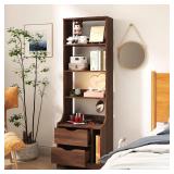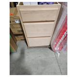 - Single door cabinet with 1-shelf and 3-drawers, lower drawer is in double height, top drawer is tip-out style