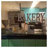 Lots: Rosette Cookie Irons Bread Pans Full Size Aluminum Sheet Pans Maryann Pans Pan-O-Cake Aluminum Angel Food Pans Syscoware Sixth Size 4" Deep Stainless Steel Hotel Pans - Model 5079496 Decopac Airbrush Air Compressor with KopyKake Airbrush Pen - Model 80-2DP Win Holt 15 Tier Side Loading Sheet Pan Rack - Model AL-2615B Win Holt 19 Tier Aluminum Sheet Pan Rack - Model AL-1820BKD/HD Win Holt 20 Tier Sheet Pan Rack with Welded Frame - Model AL-1820B Bunn Airpot Coffee Brewer - Model CWTF15-APS Bunn Dual Hopper Coffee Grinder - Model G9-2 Sysco Metro Style Shelving Units Polycarbonate Dunnage Racks #10 Aluminum Can Rack Advanced Tabco Stainless Steel Wall Shelves - WS-KS Series Ingredient Bins with Metal Carts and Slide Covers Carlisle 20 Gallon Ingredient Bin with Cart and Lid - Model 341020 True 2 Glass Door Cooler Merchandiser - Model GDM-49 Leer Walk in Cooler Leer Walk In Freezer Detecto Heavy Duty Manual Scales - Model 1051TBS-X Hobart 20qt Stand Mixer - Model A-200 Hobart 80qt Stand Mixers - Model M-802 Hobart Mixer Parts - Bowls, Beaters, Hooks, and More Mixing Bowl Lift on Casters - Model 0780 Acme Rol-Sheeter Conveyor Dough Sheeter - Model 8 Butcher Block Bakery Tables Kookie King Heavy Duty Cast Aluminum Manual Cookie Cutter with Die Presses Edhard Dual Nozzle Donut Filler Machine - Model MK Edhard Dual Nozzle Donut Filler Machine- Model DPF Belshaw Donut Fryer - Model 72-G-NG Belshaw Shortening Filter with Operators Manual - Model SF24 Mainstreet Equipment Deep Fryer - Model 541FF100N Middleby - Marshall Bakery Oven - Model 11 Oliver Gravity Fed Bread Slicer - Model 797-G Oliver Gravity Fed Bread Slicer - Model 787-G Readco Baguette Slicer - Model 4-RS Dutchess French Bread and Bagel Slicer - Model M-270 Stainless Steel 2 Compartment Sink with Spray Nozzle and Add-a-Faucet Universal Stainless Steel 1 Compartment Sink Toro Power Curve Electric Snowblower - Model 1800 Insect Electrocuter Bug Zapper - Model AG 261 Bakery Projector Fallon Neon Open Sign Hobart 2 Door Roll In Proofer Wolf Range Countertop 2 Burner Hot Plate Eagle Stainless Steel Work Table ADS Corner Dishwasher - Model AFB 4" Wide Aluminum Dough Divider with Wood Handles Dry Display Case with 2 Sliding Glass Doors