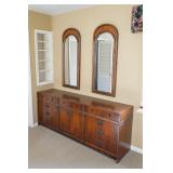 FURNITURE Drexel Travis Court Mahogany Dining Table and Chairs, Antique Console Table, Drexel Travis Court Mahogany China Cabinet, Drexel Travis Court Serpentine Mahogany Sideboard, Ethan Allen Upholstered Accent Chair, Hickory Manufacturing Paldao Dresser Credenza - with Mirrors, King Size Faux Leather Headboard, Well Worn Leather Armchairs and Ottomans, Antique Victorian Oak Armoire, Butler's Tray Coffee Table, Upholstered Reclining Sectional Sofa, Contemporary Formica Dining Table and Six Floral Roll Top Upholstered Chairs, Three Counter Height Butterfly Upholstered Bar Stools, Wood 3-Drawer Storage Bench, Modern Office Desk Unit with Hutch Top, Upholstered Reclining Armchair, Rolling Mesh Office Chair, Antique Arrow Back Desk Chair, Simulated Oak Chest of Drawers, Rolling Lift Top File Cabinet, Antique Cane-Bottom Youth Rocking Chair, Pine End Table, Wood & Metal Trundle Daybed, Petite Sage-Green Armoire #1, Petite Sage-Green Armoire #2, Hollywood Bed Frame, & Tricycle End Table.