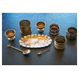 STERLING SILVER Sterling Silver Tray, Salt Savers, Napkin Rings, and Spoons & Sterling Silver Heart Necklace.