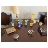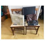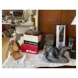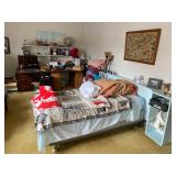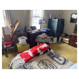 Roxbury Ext Dining room table with 6 Windsor Side Chairs, Corner Display Cabinets, Vintage Neo Renaissance Style Lion Head Savonarola Throne Chair w/Mahogany Frame, Original Signed John Lewis Egenstafer Painting, Vintage Drop Leaf Typing Table, Vintage Yo Yo Bed Quilt, Table, Singer Sewing Machine, Proform GR 80 Exercise Cycle, MCM Office Chair, Vintage Railroad and Ohio cheat River platter, Oval Serving Platter Centenary Colonial (Baltimore and Ohio), Stangle Yellow flower pattern, Tea Cups, Beds, Vitamix, Wedgwood Jasperware, Mirrors, Drop Leaf Tables, Lamps, Corning Corelle Wildflower dinnerware, DVSs, Clocks, Spanish Revival Three-Lamp table Lamp, Soapstone Art Sculpture Eskimo Seal, Antique Unique Rocking Chair, Nikon Binoculars, Vintage Pyrex, File Cabinets, Desks, Books, Kitchen Items, Clothing and so much more. |