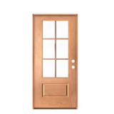 (30) Krosswood Doors 36 in. x 79 in. Modern Farmhouse Clear Glass Window Left-Hand/Inswing Teak Stain Woodlook Fiberglass Prehung Front Door