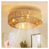 Moooni 20" Boho Caged Ceiling Fan with Light - Flush Mount, Low Profile, Remote Control, 6 Speeds