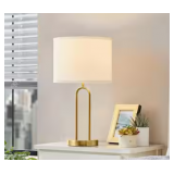 Hampton Bay Streamside 20 in. Brushed gold Standard 1-Light Table Lamp with White Fabric Drum Shade