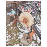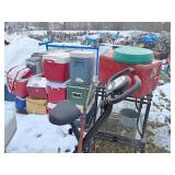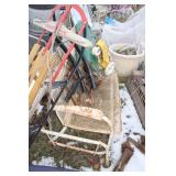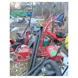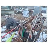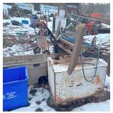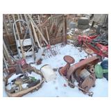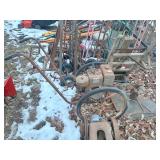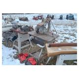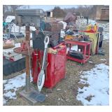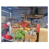Welding tables; generators; air hoses; dollies of all kinds; sawhorses; tarps; drain augers; jack stands; ratchet straps; portable sandblaster; air compressors; shop fans; pressure washers; air bubbles; heavy duty copper wire; farm wagons; motors; T-post; welders; welding bottles; C-clamps; vise grips; bench vises; shop vacs; weed eaters; hedge trimmers; Kennedy tool chests & boxes; jump boxes; lots of tool cabinets; bolt bins full of hardware; bench grinders; power tools; shop tools; hand & yard tools; table saws; Black & Decker workmates; radial arm saws; heavy duty drill press; large anvil; wheelbarrows; leaf blowers; band saws; ropes; tons of ladders of all kinds: aluminum, extension, fiberglass, folding, etc.; blacksmith’s post vise; snow blowers; furniture dollies; woodworking tools; commercial tools; lumber; warehouse dollies; broadcasting spreaders; gas cans of all kinds; winches; live animal traps; Oliver commercial bandsaw; warehouse stairs; pipe stands; diamond plate dock plate; long handled tools; & much more!
