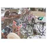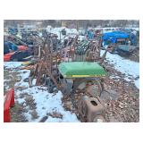 Cattle equipment; bunk feeder; 3-point dirt scoops-(2); assorted panels & gates; hay rings; several manure spreaders-John Deere, etc.; & more!