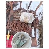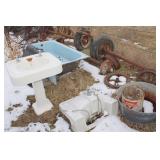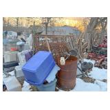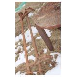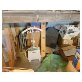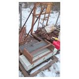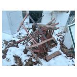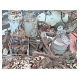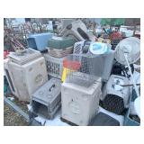 Old Coleman kerosene lanterns; knives; ammo; jewelry; brass items; lots of primitives; old metal signs; antique tools; lots of galvanized washtubs & buckets; meat grinders; antique platform scale; old buck saws; old wagons; old lanterns; musical instruments; hand-stitched quilts; antique hump-back trunk; old canning jars; old license plates; old milk cans; ice tongs; vintage pinball machine; wooden whiskey barrels; antique treadle sewing machines; vintage cabinets; galvanized double wash tubs; slot machine; antique cedar chests; MCM metal fireplace; architectural salvage ornamental iron; antique brass bed frame; vintage 1950’s metal porch glider & lawn chairs; wrought iron porch gliders; old sleds; old oil cans; grinding stones; old traps; huge amount of old steel implement wheels; old scales; old buzz saw blades-large; & much more!