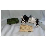 LARGE ANTIQUES & COLLECTIBLES AUCTION! SATURDAY-FEBRUARY 21, 2026 @ 10:00 AM! ANTIQUES & COLLECTIBLES: FURN: Oak Victorian 2-Blind Door over Drawer Wardrobe, 1920/30's 2pc Bedroom Suite (Bed & Chifforobe), Oak Curved Side Glass China Cabinet, Pair 1960's Hoosier Style "Sweetheart" Chimney Cabinets, Oak Freestanding Shaving Mirror, Oak Empire Buffet, Empire Buffet w/bvld Glass Mirror, Oak "Frohock" Ice Box, Walnut & Burl Parlor Table w/Chocolate Marble Top, (4) Quartersawn Oak "T" Dining Chairs, Oak Hanging Cabinet w/(2) Glass Doors, Showers Mahogany Drop Center Dresser, Mahogany 2/2 Drawer Dresser, Oak Quartersawn Music Cabinet, Oak Splay Leg Stand, Empire Style Sofa Table, Mahogany Game Table, Oak Pressback "Convertible" High Chair, Oak Continuous Arm Rocker, Singer Treadle Sewing Machine, Pine Storage Bench w/Heart Cut-Out, SMALLS: Victor VV-IX Table Top Phonograph, Rare Hocking Valley Oak Barrel w/Spigot, Globe Industrial RR/Warehouse Cart, Oak Cased American Electric Wall Phone, Unusual 6" long Brass & Copper Bugle, Carmel Slag Panel Boudoir Lamp, Dazey #40 Churn, Copper Pelican, Cast Coffee Grinder, Cast Iron #4 Fruit Press, GLQ Bean Slicer, Harness Maker's Clamp, Orchard Ladder, Hunt-Helm-Ferris Hay Trolley, Lovell Bicycle Wringer, (2) Oak Chicken Crates, Primitives, Wood Tine Pitch Fork, Hay Fork & Rake, Brass Candy Bucket, Copper Kettle, Apple Chalk String Holder, Crocks, 15gal Crock, 30+pcs Grey Graniteware, Blue Grainteware Coffee Broiler, Green Graniteware Bowl, Dietz Wagon Lantern, Dietz Skaters Lantern, C&O & B&O RR Lanterns, Sanborn Barometer, (2) Large Rattan Storage Baskets, Geese & Duck Decoys, 20+ Oil Lamps, Early Prints, Mariam Sample Rockmill Print, Ephemera, Small Stamp Collection, Longaberger Baskets; 30+ MILK BOTTLES (Enameled, Baby Face, Goat, etc): Dairy Display Salesman Sample 1qt, Brighton Place Green 1qt, Weckerle Green 1qt, 1949 Duraglas Handi-Square 1qt w/Desk Calendar, Set of 8 Ross Dairy (Belpre), Knoxville Dairy Purple Milk Bottle, Muella's "Cop" Milk Bottle, 10+ Red Enamel Lancaster Home Dairy (Different Backs), Parkview Dairy 1pt, Logan Home Dairy, Frasure Brown, (2) PA 1/2pt Nursery Rhyme bottles, Mini Creamers, 30+ MORE BOTTLES: Cleo Cola, Anchor Hocking Ruby Schlitz Bottle, Mission, Brownie, Vess, Big Ten, Kurtz, Solon, Sun Spot, Vance's, Tom Boy, Cascade, I-C, Up-n-Up, Mountain Top, Gulf, Frank's, Bobby Sox, Sunset, Eby's Baby Bottles, GLASS & POTTERY: 90+pcs Franciscan Apple, 40+ pcs Vintage Fiesta Ware, 20+pcs Hall Jewel Tea, Fenton Cranberry Hobnail Parlor Lamp, 40+pcs Fenton, Carnival, Erickson, Robt Held Art Glass Vase, Myott Cheese Dish, Amber Candlewick Divided Dish, RS Silesia Creamer & Sugar, Pink Depression, (2) Shawnee Corn Pitchers, Shawnee Smiley Pig Pitcher, Weller Forest Basket, Weller Lily Vase, Roseville Donatello Sm Jardiniere, McCoy Apple Cookie Jar, Hull Bow Knot Jardiniere, Hull Wildflower 10" Vase, 3pc C.C. Aler Zanesville Scenes Decorated Porcelain, More Glass! TOYS, CAP GUNS & COMICS: Murray Model 742 Sand & Gravel Pedal Car, Schwinn Starlet Ladies Bike, 1940's Ladies Hawthorne 26" Bike, Turner Pressed Steel Dump Truck, Buddy L Scarab, Buddy L Sand & Gravel Truck, Keystone Ride-Em Steam Shovel, Tonka Car Carrier w/box, Tonka Dump Truck, Structo Cattle Semi w/Trailer, Structo Utility Truck, Structo Dump Truck, Structo Mobile Steam Shovel, Structo Steam Shovels, Ny-Lint Electronic Cannon, Wyandotte Steam Shovel, Marx Studebaker Stake Truck, (5) NIB Nylint Real McCoy, Thimble Drome & Rodzy Standard Racer Tether Race Cars w/Engines; Superior Toys "State Fair" Electric Pinball Machine, Sony PS One, Nintendo Display Case, Cox Dune Buggy w/box, Cragstan Continental Super Special Tin Car, Tin Friction Old-Timer Car w/box, Tin Litho Antique De Luxe Tourer Car w/box, Marx Magic Barn & Tractor w/box, Marx Rock'Em Robots w/box, Astra Diecast Rocket Gun w/box, Astra Pom-Pom Gun w/box, Tin Litho B/Op Air Force Fighter Jet, Tin Litho Friction Buick Convertible, Marx Dick Tracy Squad Car #1, Black Beauty Hobby Horse, Marx Playsets (Cape Kennedy, Ft Apache, Farm, Doll House), Marx Tin Litho Minit Car Wash, Marx Penny the Poodle, Marx Bar-M-Ranch, Roy Rogers Tin Litho Ranch Bldg, Roy Rogers Lantern, Marx Freight Train Station, Marx Glendale Depot, Ohio Art Barns, Ideal Electroman w/box, Ohio Art & Other Tops, J Chein Hod Sand Toy, Archer Spacemen, Disney Melody Player, Peanuts Items, Halloween Tin Noise Makers, Jog-O Climbing Monkey, Marbles, Walnut Victorian Doll's Bed, Easy Bake Oven w/box, CAP & BB GUNS: Roy Rogers Pair Cap Guns w/matching Belt & Holsters, Nichols Stallion w/Buffalo Bill Belt/Holster, Hubley Buffalo Bill w/Holster, Kilgore Pinto Buffalo Bill, Hubley Wyatt Earp, Hubley Cowboy, Stevens 25 JR Cap Pistol w/box, Mattel Remington Derringer Belt Buckle Cap Gun, Pet, Super Defense, Leslie Henry Texas, Wyandotte G-Man Clicker Gun, Partial Box of Ace Roll Caps, BB: Sheridan Blue Streak, Crossman 1400 Belt Breech, Crossman Powermatic 500, Benjamin 340, Ben Franklin, Daisy inc: Red Ryder, Model 25, Red Ryder Model 111, Red Ryder Model 94, Model 1938B, Model #25 & Model 880; LUNCH BOXES: Bonanza, Gunsmoke Matt Dillon, Gunsmoke, The Monroes, Hopalong Cassidy w/Thermos, Legend of the Lone Ranger, BOOKS & COMICS: Roy Rogers, Gene Autry, Rinty, Tarzan, Fury, Hopalong, Johnny Mack Brown, Texas Rangers, Tex Ritter, etc! TERMS: Cash or good check day of auction. Visa & MC w/4% Clerking Fee. Proper ID Required. Food. DAF AUCTION, INC. AUCTIONEERS: DAVID FLOOD, DIXIE MOLLENKOPF & ALLIE POSTON 614-783-8339 - dafauction.com