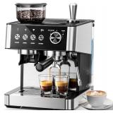 (235) Kismile Espresso Machines with Grinder,15 Bar Professional Espresso Maker with Removable Water Tank, Hot Water Function,Milk Frother Steam Wand for Latte&Cappuccino(Black)