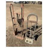 TOOLS* 8 Foot Aluminum Ladder, Large Bench Grinder, Small Vise, Power Tools, Weed Eater Gas Blower (New in Box), Saws, Mechanic Tools, Garden Tools, 3 Fertilizer Spreaders, Lopers, Seed Planter, Pair of Car Ramps, Vintage Shop Lights, Extension Cords, Toolbox, Small Wood Tool Caddy, Appliance Dolly, 2 Wheel Dolly, Air Tank, Propane Tank, Sprayers, Attic Ladder, Tire Tools, Small Wheelbarrow, Grocery Cart, Horse Sheers, and More!