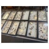 JEWELRY & COINS* 20 Eisenhower Dollars, 20 Kennedy Half Dollars, Roll of Kennedy Half Dollars, Pair of Sterling Silver Candle Holders, Rings, 12 Trays of Collector Pins (40 each), and more!