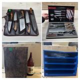 Stainless steel TRINITY utility sink, neon signs, Damascus knife sets, storage bins, shelving, tools, and more.