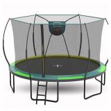 12FT Kids Trampoline, Upgraded Curved Trampoline with Enclosure for Outdoor Play, 2-IN-1 Trampoline with Hoop for 6-8 Boys and Girls