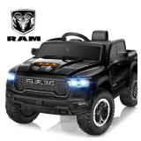 RAM 1500 Ride on Car Toy for Kids, 12V Powered Ride on Truck Toy with Remote Control, 4 Wheel Suspension, Safety Belt, Music, Bluetooth, LED Lights, Electric Cars for 3-5 Yrs Boy Girl, Black