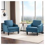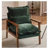 Dark Green Chenille Arm Chair Accent Chair with Thin Arms For Living Room