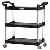 TUFFIOM 3-Tier Plastic Service Utility Cart with Wheels, Heavy Duty 390lbs Capacity, Commercial Rolling Ideal for Restaurant, Foodservice, Office, Warehouse, Black 34.8''L x 17.4''W x 38.6''H