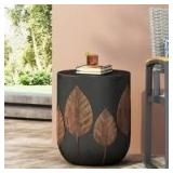 This cylindrical side table adds a sculptural accent to your outdoor setup with its matte black finish and carved leaf motif. Made from water-resistant stone and lightweight concrete, it’s easy to move and works well on patios, porches, or sunrooms. The round top offers plenty of space for drinks, books, or decorative items. Its earthy, boho-inspired design blends seamlessly with a variety of outdoor styles. Plus, it arrives fully assembled, so you can enjoy it right out of the box.
