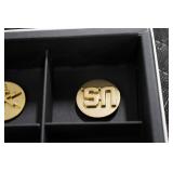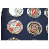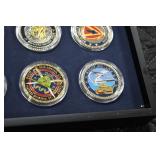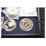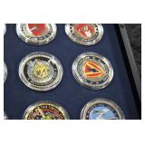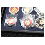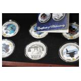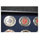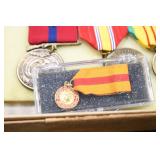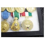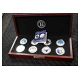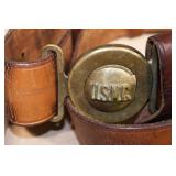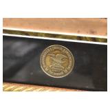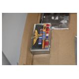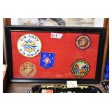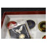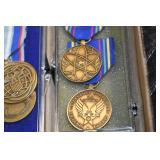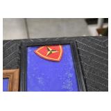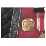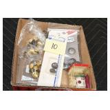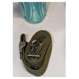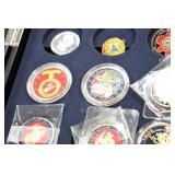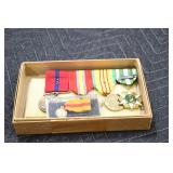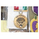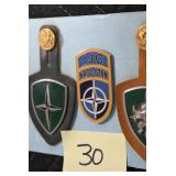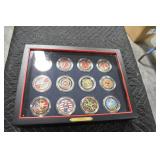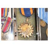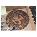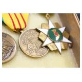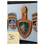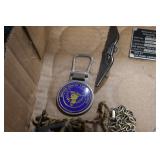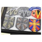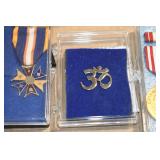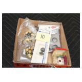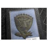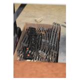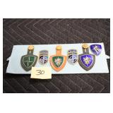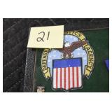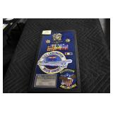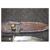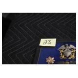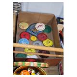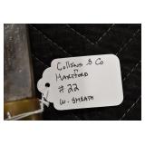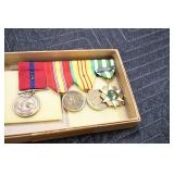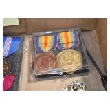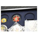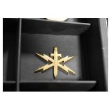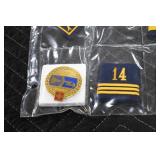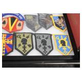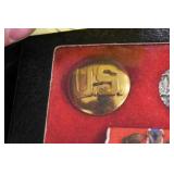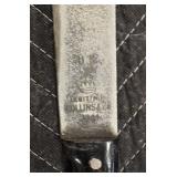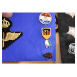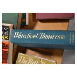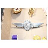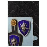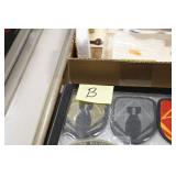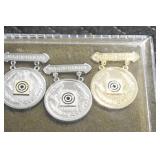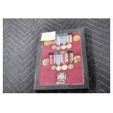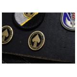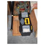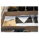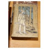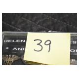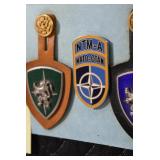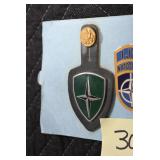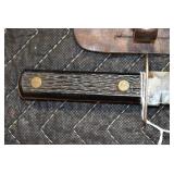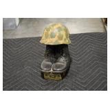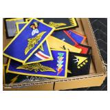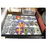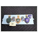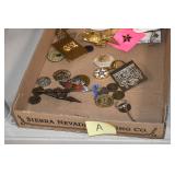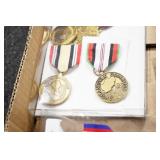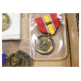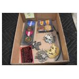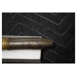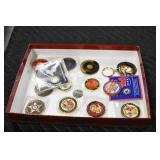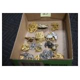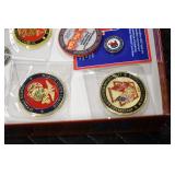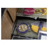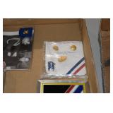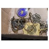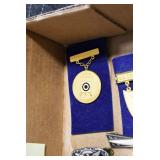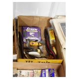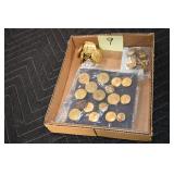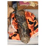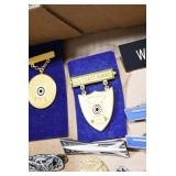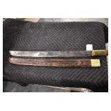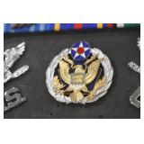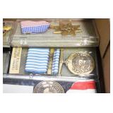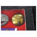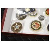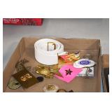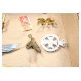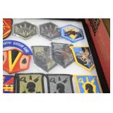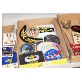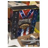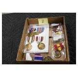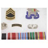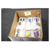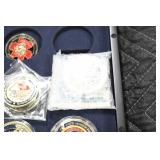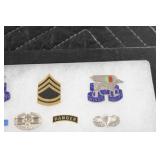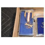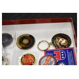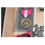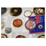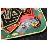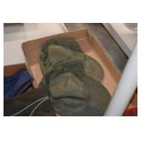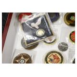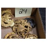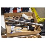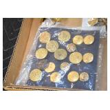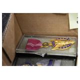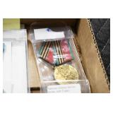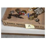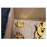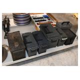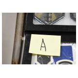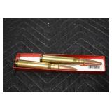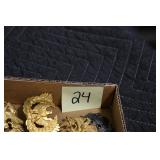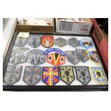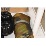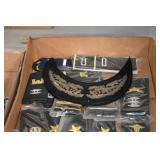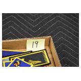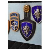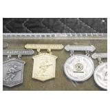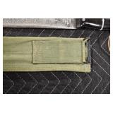 Gun, Fishing, and Military Related: Swords, Machetes, Large Amount of Folding, Pen, and Sheath Knives, Tasco Scopes, Various Ammunition, Shotgun Shells, Carved Wooden Bullets, NRA Glass Set, NRA Statue Figures, Cleaning Rods, Reloading Powder, Targets, Fishing Rods, Large Military Shells, Large Amount of Military Pins, Badges, and Patches, Military Hats and Helmets, Wooden Ammo Crates, and Other