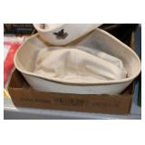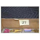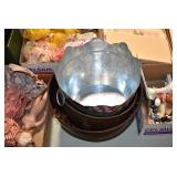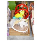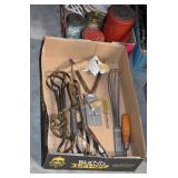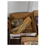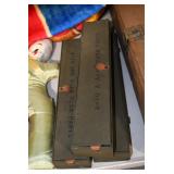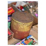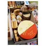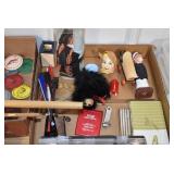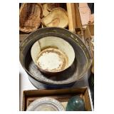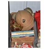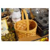 Antiques and Collectibles: (26) Various Lots of Hat Pins, (15) Longaberger Baskets of Various Sizes and Styles, (7) Carved Wooden Canes, (14) Barbie Dolls New in Box, Large Amount of Vintage/Collectible Tools, Pottery Crocks and Jugs, Pottery Planters, Pottery Bowls, Jim Shore Collectibles, Vintage Lamps and Lanterns, Vintage Kitchen Utensils and Tools, Butter Presses, Vintage Scales, Large Amount of Collectible Dolls, Seasonal Decorations, Vintage Christmas Ornaments, Holiday Blow Molds, Old Books, Belt Buckles, Castware, Vintage Thermometers, Advertising Items, Carved Wooden Animals, Marbles, Tabacco Pipes, Framed and Un-Framed Prints and Pictures, and Other