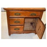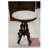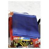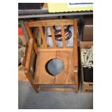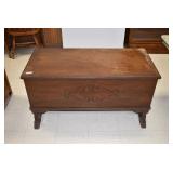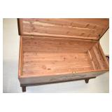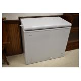 Furniture: Large Meade Starfinder Telescope, West Branch Cedar Blanket Chest, Hotpoint Chest Freezer, Vintage Side Stand, Wooden Wagon, Marble Top Stand, Floor Display Cabinet, and Other