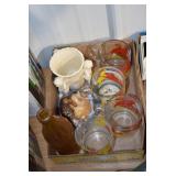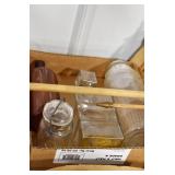 Antique Glassware: Glass Oil Lamps, Vintage Glass Bottles, Carnival Glass, Uranium Glass Bell, Uranium Glass Plate, Uranium Glass Funnel, Uranium and Other Marbles, Uranium Glass Juicer, Uranium Glass Measuring Cup, Fenton Hand Painted Dishes, Glass Canisters, and Other