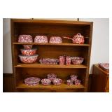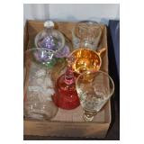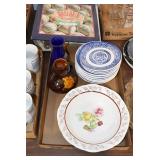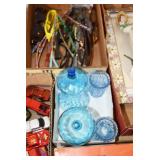 Antique Glassware: Vintage Glass Bottles, Glass Figures, Glass Oil Lamps, Carnival Glass, Blue and White Glass Woodsware Dinner Service, Large Amount of Blue and White Woodware Decorative Glassware, Art Glass, Decorative Glass Vases, Ceramic Glass Christmas Tree, Westmoreland Glass, Lenox Glass, Glass Lady Figurines, and Other
