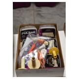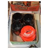 Antiques and Collectibles: Pottery Crocks and Jugs, Large Amount of Red and White Graniteware/Porcelainware, Cast Fry Pans, Large Amount of Hat Pins and Hat Pin Holders, Carved Wooden Animal Figures, Large Amount of Advertising Hand Fans, Beer Steins, Beer Advertising Items, Cast Horse and Carriages, Hallmark Keepsake Ornaments, Seasonal Decorations, Vintage Baseball Cards, Various Stamps, Game Commission Patches, Advertising Items, Old Photographs, Old Fishing Licenses, Marbles, Gold Tooth Filling, Wheat Pennies, Winchester Flashlights, Wooden Butter Churn, Copper and Brass Items, Tinware, Woodware, Sleigh Bells, Vintage Childs Books, Knife Sets, Large Amount of Folding, Pen, and Sheath Knives, Fishing Reels, Fishing Lures, Various Ammunition, Framed and Unframed Prints and Pictures, and Other