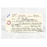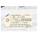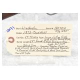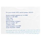 280. Winchester – Mod. 1873 3rd Model – 32-20 WCF Cal. Lever Action Rifle – w/28” Factory Special Order Octagon Barrel w/Blade Front and Adjustable Rear Semi-Buckhorn Sights – Brown Finish – w/Straight Grip Wood Stock and Capped Forearm w/Crescent Metal Butt Plate – w/Full Length Tubular Magazine – w/Lyman Rear Tang Adjustable Peep Sight – Manufactured 1889 – w/Cody White Sheet Verifying the Special Order Barrel