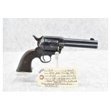 292. Colt – Mod. Single Action Army 1873 1st Gen – 45 Colt Cal. Single Action Revolver – w/7½” Barrel w/Blade Front and Groove Rear Sights – Blued Finish w/Vivid Case Colors on Frame – w/White Bone Grips – Gun is All Matching Numbered Including the Cylinder! – Manufactured 1877