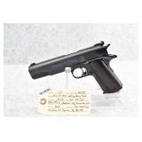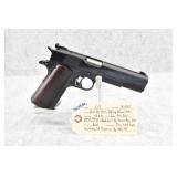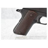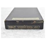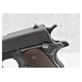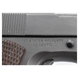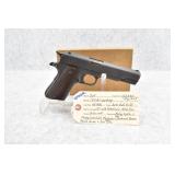 295R. Colt – Mod. 1911 A1 U.S. Army – 45 Auto Cal. Semi-Auto Pistol – w/5” Barrel w/Blade Front and Rear Notch Sights – Parkerized Finish – w/Factory Checkered Brown Plastic Grips – w/1 Factory Detachable Magazine – w/2-Piece Contract Box – Manufactured 1943