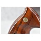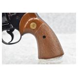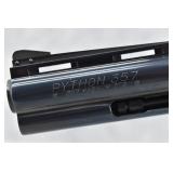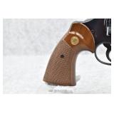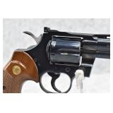 325R. Excellent! Colt – Mod. Python – 357 Mag. Cal. Double Action Revolver – w/4” Vent-Rib Barrel w/Ramp Front & Adj. Rear Sights – Blued Finish – w/Factory Checkered Wood Grips w/Colt Medallion – Gun Appears Test Fired Only! w/Factory Wood Grain Box w/Foam Inserts, Warranty Card & “Handling The Gun” Manuals – Mfg. 1974