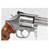 304R. Smith & Wesson – Mod. 648 – 22 M.R.F. (22 Win. Mag.) Cal. Double Action Revolver – w/6” Barrel w/Partridge Front and Adjustable Rear Sights – Stainless Finish – w/Factory 3-Finger Groove Wood Grips w/S&W Medallion – w/Full Lug – Manufactured Between 1989-1994